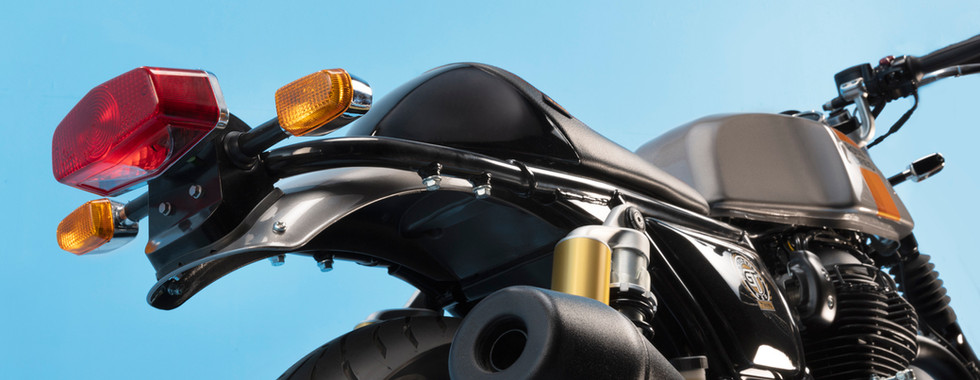 That means the premium feeling switch blocks and LED headlight from the Super Meteor make their way over to the Interceptor and Continental GT, while the bikes also gain cast alloy wheels with tubeless tyres as part of the blacked-out build.